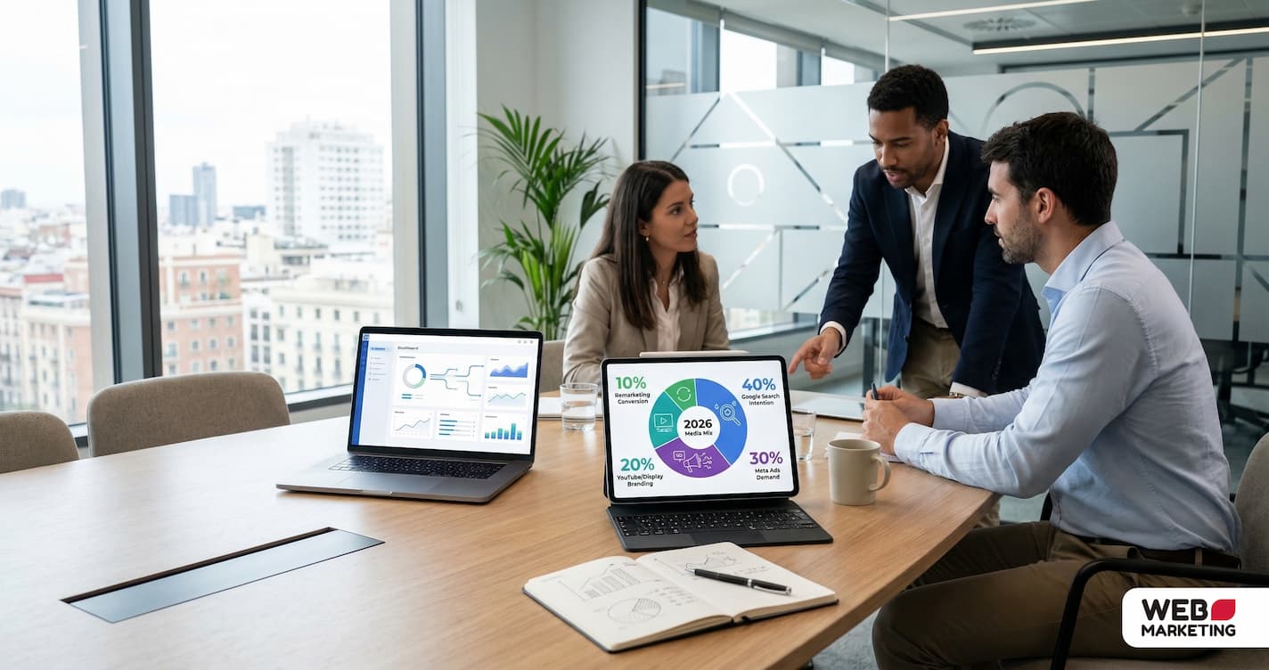 Para una empresa mediana que busca escalar en 2026, sugerimos la siguiente distribución de presupuesto (Mix de Medios):